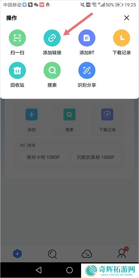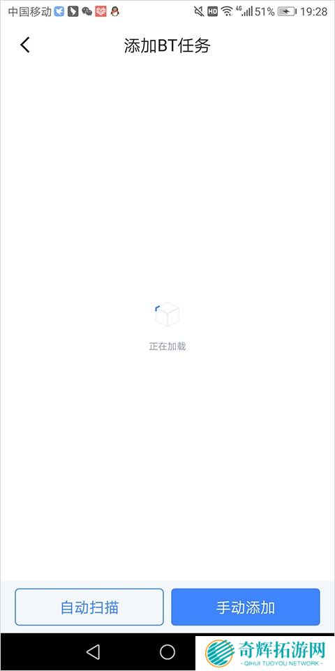 4、如果需要下载bt文件的资源,可以点击【添加bt】,在打开新页面中可自动扫描手机本地的torrent文件,也可手动添加本地的torrent文件。