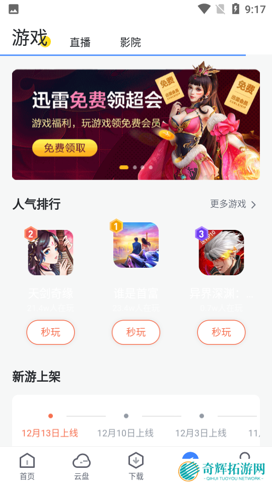 迅雷HD集下载、云盘、影音等功能于一体,完成继承了迅雷一贯的高速下载特点,还针对平板设备的操作习惯进行优化和升级,大型软件、高清视频、图片文件都可以快速完成下载。软件内置云盘服务,登录即可获取1T免费存储空间,将重要的文件上传到云端,依托最先进的加密技术,确保第三方平台无法直接获取。云盘中的文件可以直接打开浏览,借助视频解码技术,影音文件以原声播放。