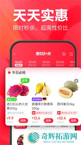 2、集优选水果、时令鲜蔬、禽鱼肉类等数十种商品分类、海量商品任您挑选。