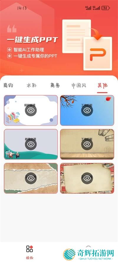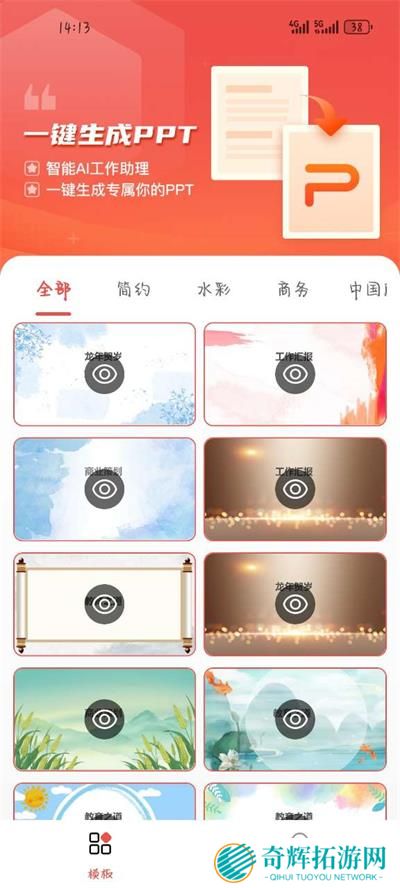 爱做PPT是为安卓手机打造的免费PPT制作软件,依托最先进的AI技术,只需输入PPT的主题与标题,系统就会在短时间内生成合适的PPT模板,迅速确定PPT的模板主题与文案风格,并给出详细的PPT大纲,制作演讲文件从未如此简单。内置上万种免费PPT模板,商务、学习、竞赛等PPT主题版块都能找到,搭配独特的背景图片和文字风格,让你的PPT成功脱颖而出。
