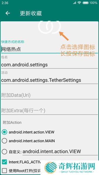 5、这里就可以设置快捷方式的名称、包名、活动等各项内容。