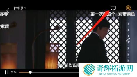 2、在视频播放界面,点击右上角【TV】按钮,在选项页面中点击【投屏】按钮。