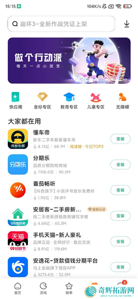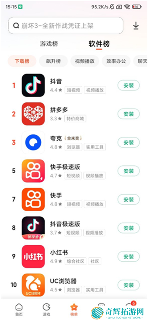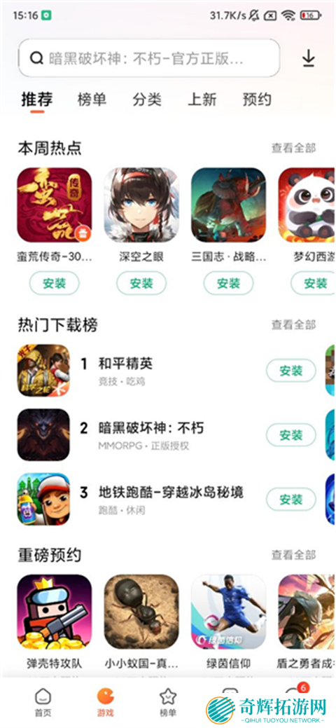 3、详细的分类,游戏和软件都有对应的分类版块,方便快速找到感兴趣的应用。