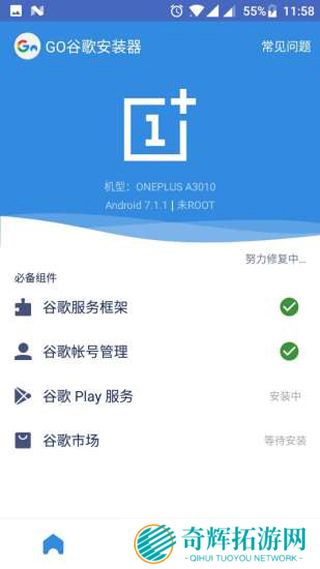 1、做到了智能一键安装谷歌服务框架、谷歌破解市场和谷歌账户管理三件套。