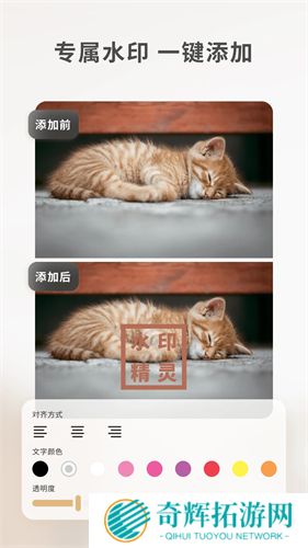 乐其爱水印精灵手机版是一款以去除、添加水印为主要功能的图片处理软件。软件主要功能以处理水印为主,支持去水印、加水印两个主要的功能。在加水印的时候,你可以自定义自己水印的文字、图案的样式、大小、颜色等内容,导入图片素材之后,可以选择在图片的哪个位置添加水印。也可以对图片进行去水印的操作,操作简便,一键就可以消除各种水印,效果非常好。