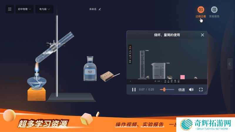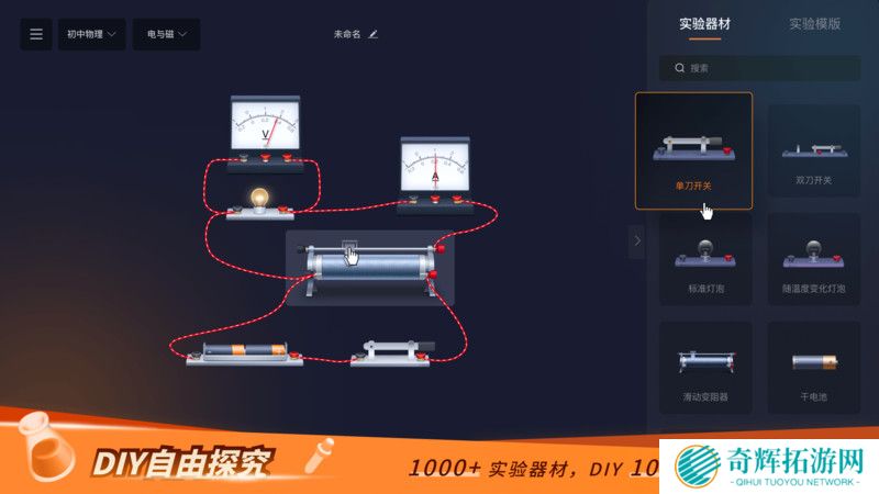 2.根据需求在右侧器材栏选取需要的器材,即可进行组装与探究