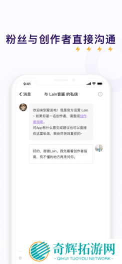 2、作为创作者你可以与粉丝一对一沟通,通过发电之后你可以和创作者进行各种私密的聊天互动哦。