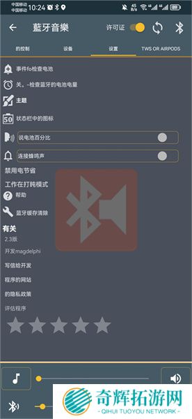 3、在设置界面中你还可以检查蓝牙电池、设置主题、清除缓存等操作。