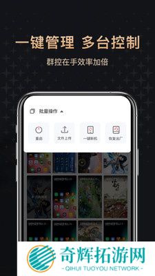 1、进入红手指专业版安卓app,点击主界面的按钮,呼出的云手机同步管理功能包括:重启、文件上传、一键新机、恢复出厂等操作。