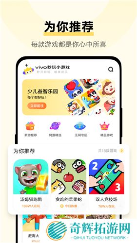 秒玩小游戏最新版是一款为vivo手机用户提供丰富在线小游戏畅玩体验的应用。拥有大量的在线游戏供用户选择,无需下载到手机上即可直接在线游玩。可以享受到各种类型的小游戏和大型游戏,包含了各种各样的游戏类型,满足不同游戏玩家的需求。无论是休闲小游戏还是沉浸式大型游戏,都能满足玩家的游戏需求。