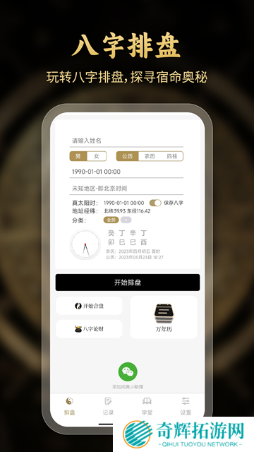 打开app,进入到首页排盘,页面分为以下几个模块: