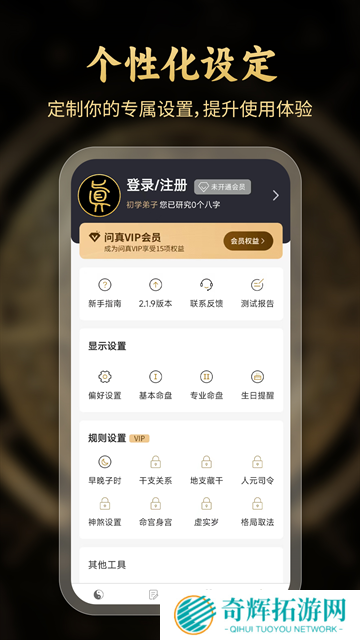 问真八字的盘面信息,共分为基本信息、基本命盘、专业细盘三个模块。