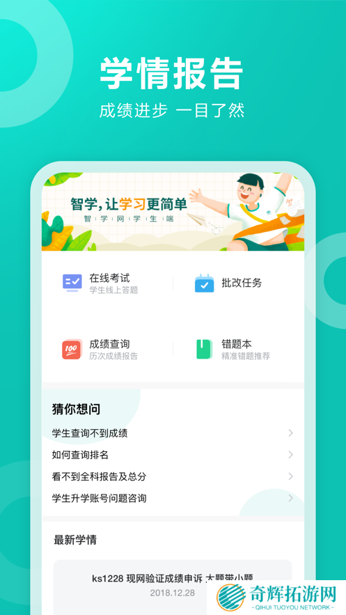 智学网学生端安装包是一款为学生们推出的线上教育学习平台。该平台提供了从小学到高中的各种不同科目学习资料,让用户能够自由地学习各个年级阶段的知识。同学可以找到丰富的学习教材,根据语文、数学、英语等不同科目来选择自己薄弱科目学习,并且还提供各种考题、模拟练习题,让用户进行充分的练习,查缺补漏。对于不会的题目,用户还可以在平台上找到相关解答。