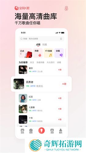 全民k歌免费版让用户无需去KTV,在家中就可以享受K歌的乐趣。软件提供了超多的伴奏,不论你想唱什么歌曲,都能找到相应的歌曲伴奏,尽情展示你的歌喉。全民K歌还有一个个性化的打分系统,分享自己的高分歌曲给好友,结交到更多喜欢唱歌的朋友。