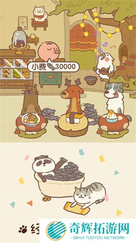 2、雇佣众多可爱的动物员工,发展扩大自己的餐厅。学习各种各样的菜谱挑战,制作出各种美味食物。