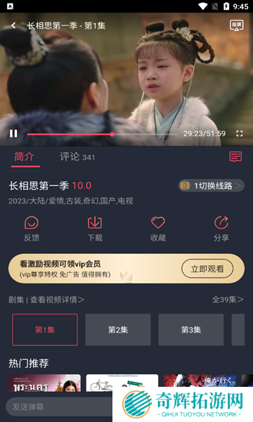 2、支持全屏播放,可投屏到电视等大屏设备进行挂科,多条线路切换,随时观看高清视频。