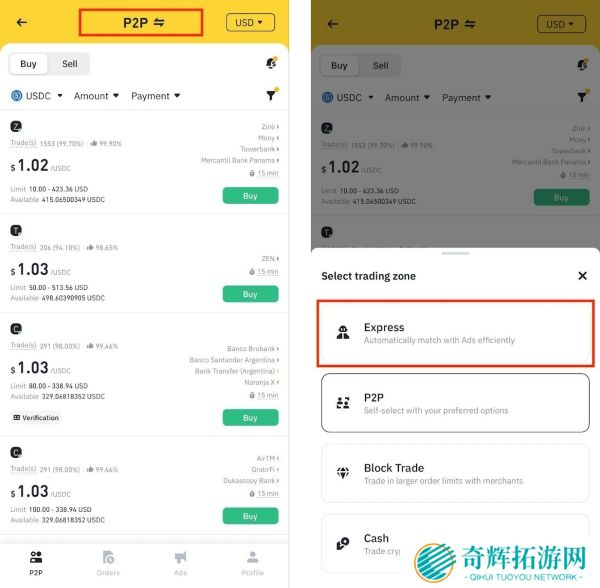 4.如果未找到与您的交易金额匹配的支付方式或广告,请切换至自选区,让系统填写“可交易的加密货币数量”或调整“地区”筛选条件。
