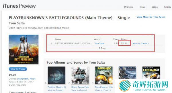 近日,火热的吃鸡游戏《绝地求生》又出新花样了,不过这次不是在游戏中出新玩法,而是在圈钱方面出了新花样,绝地求生主题曲上架苹果iTunes居然销售0.99美元,网友表示这就有点过分了!LOL都没这么过分呢,下面一起来看看吧!