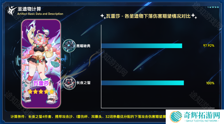 对于瓦雷莎来说,长夜之誓可以作为毕业的套装选择,和其他圣遗物相比有着更高的上限,但需高暴击率支持,在高暴击的支持下,增伤乘区收益更高,适合毕业玩家