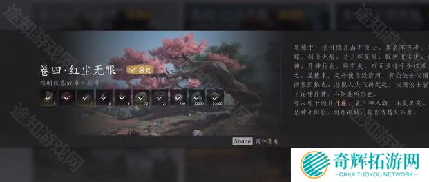 首先是第一个清风驿的位置,这只需要我们完成清河侠迹卷四红尘无眼就能获取。