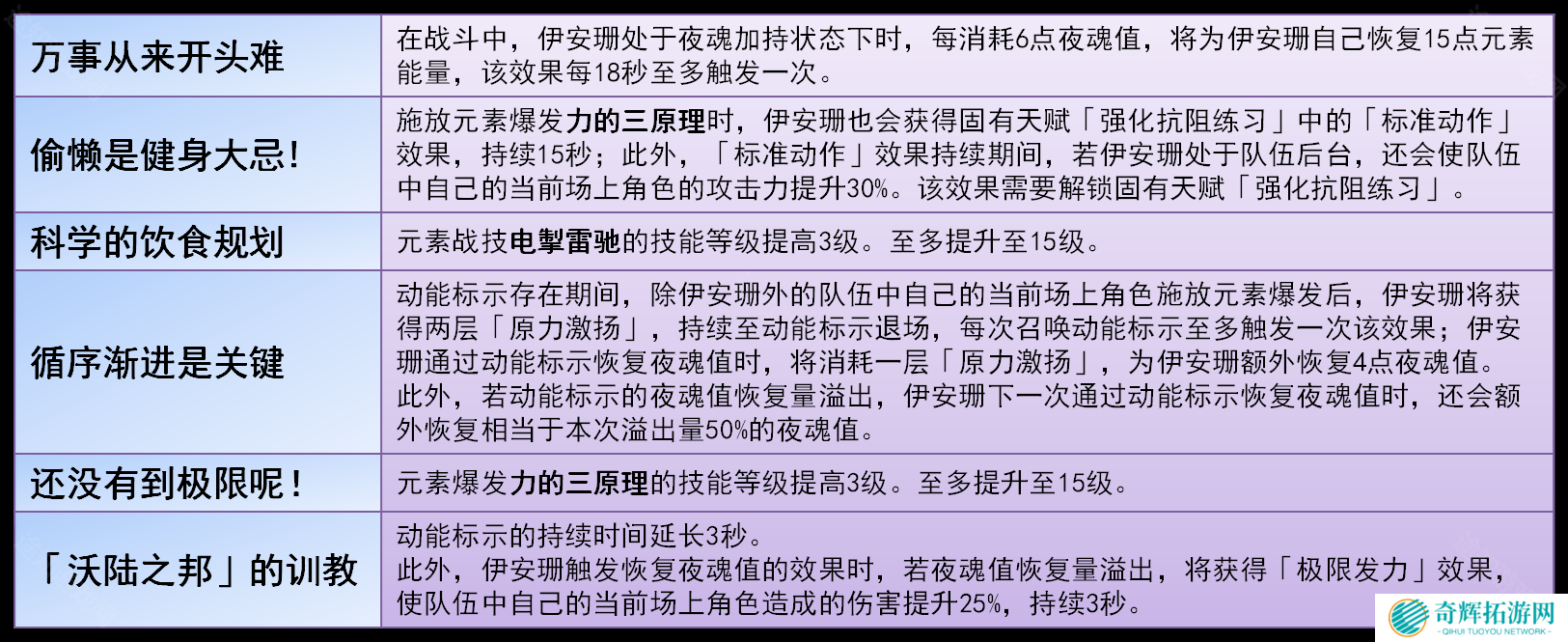 四命:大招期间,其他角色在场上放大招时,给伊安珊额外补充夜魂值,溢出也会在下次伊安珊开大招时补回来。