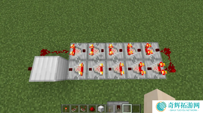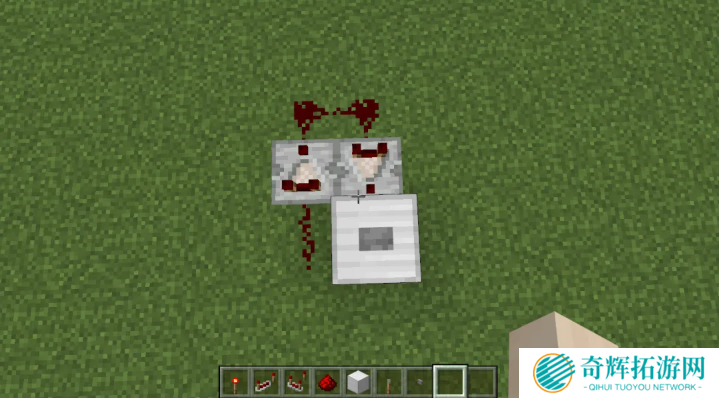 想要延长激活持续时间还是可以利用用样的方法,增加红石比较器数量,用红石连接,在铁块侧边新增加1个红石火把。