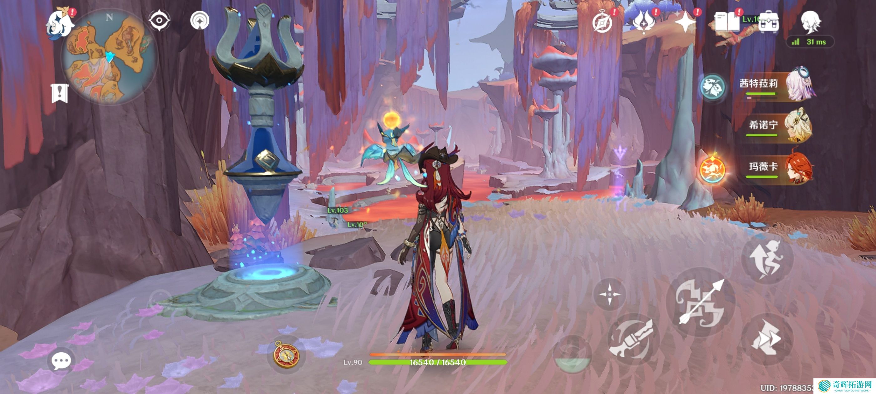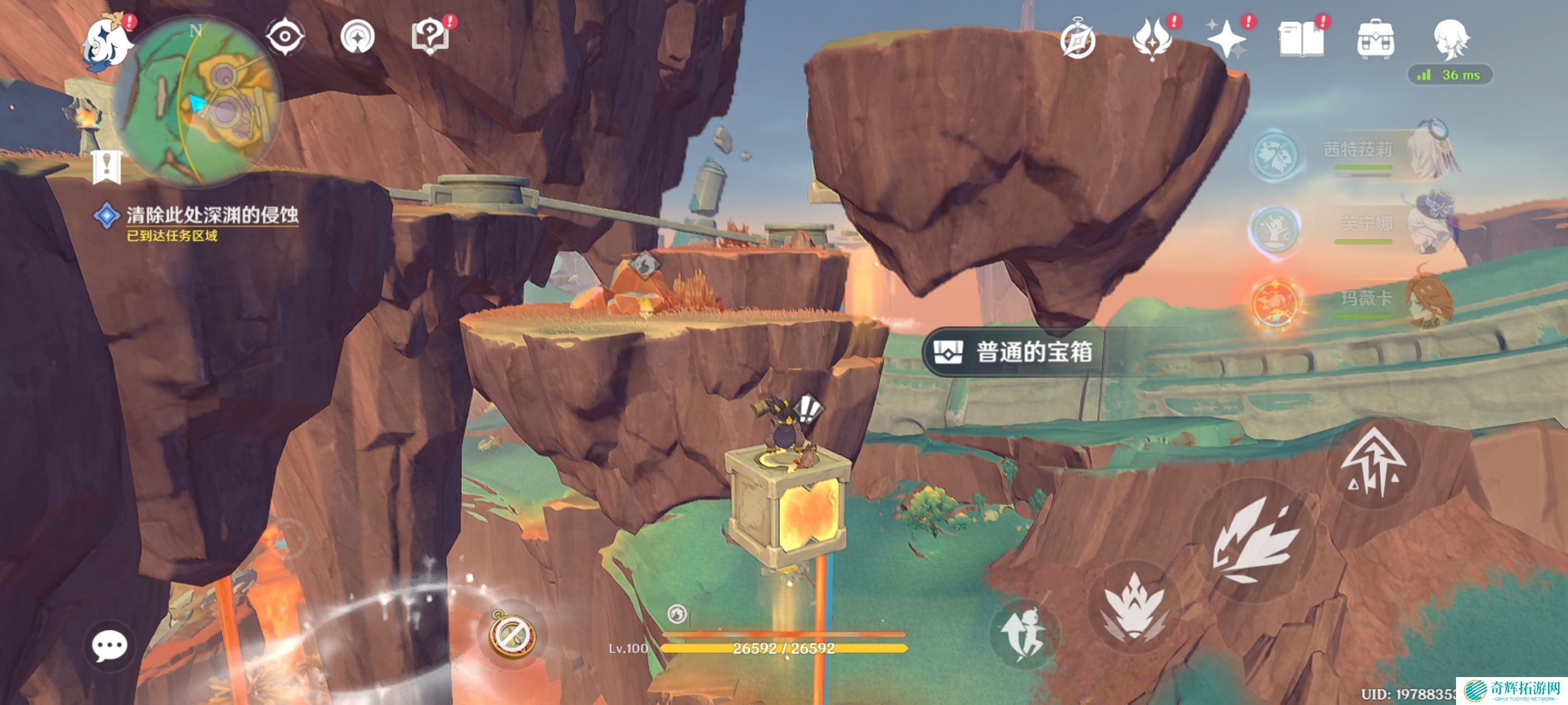 解锁锚点,击败周围敌人获得精致宝箱*1,锚点右侧下方晶岩内火神瞳*1