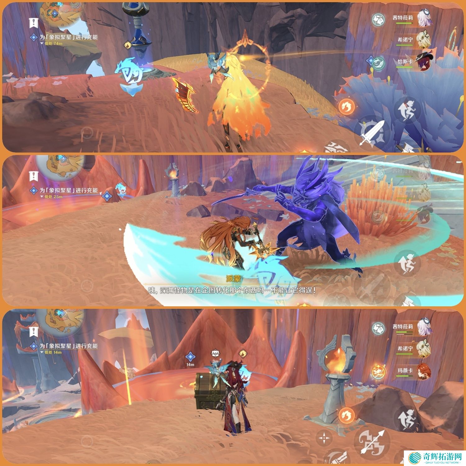 跟随指引前往第二处位置,通过灵道来到高处击败敌人,获得珍贵宝箱*2,附身鳍游龙进入燃素池充能
