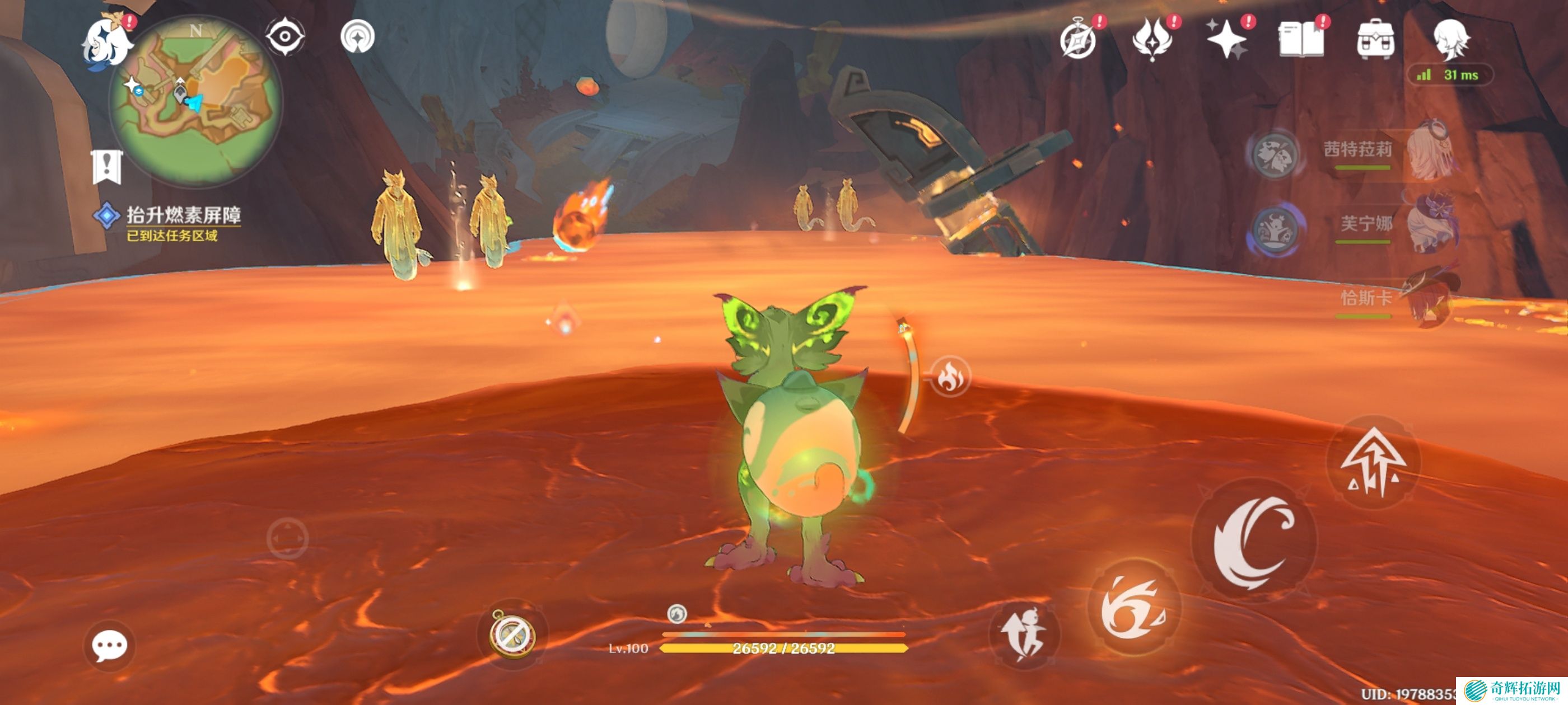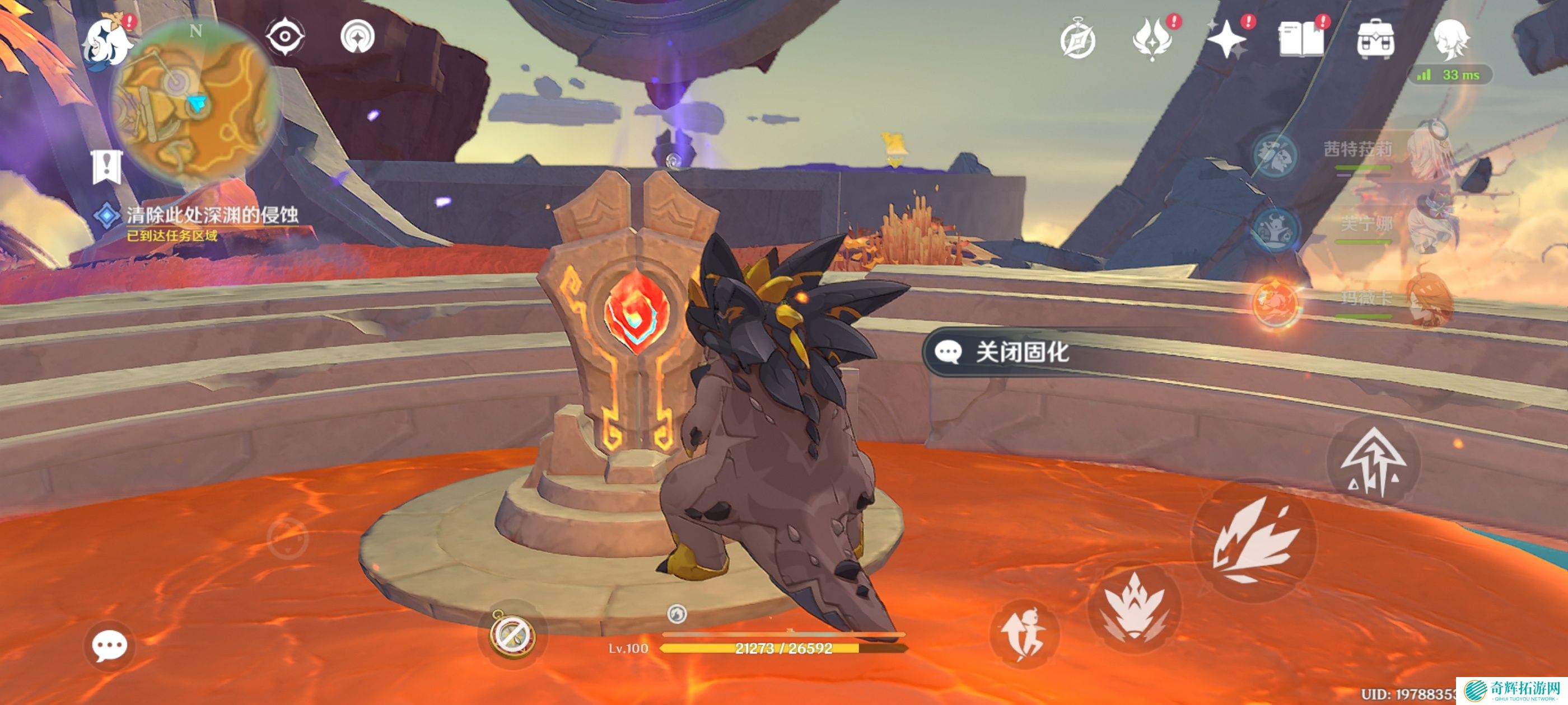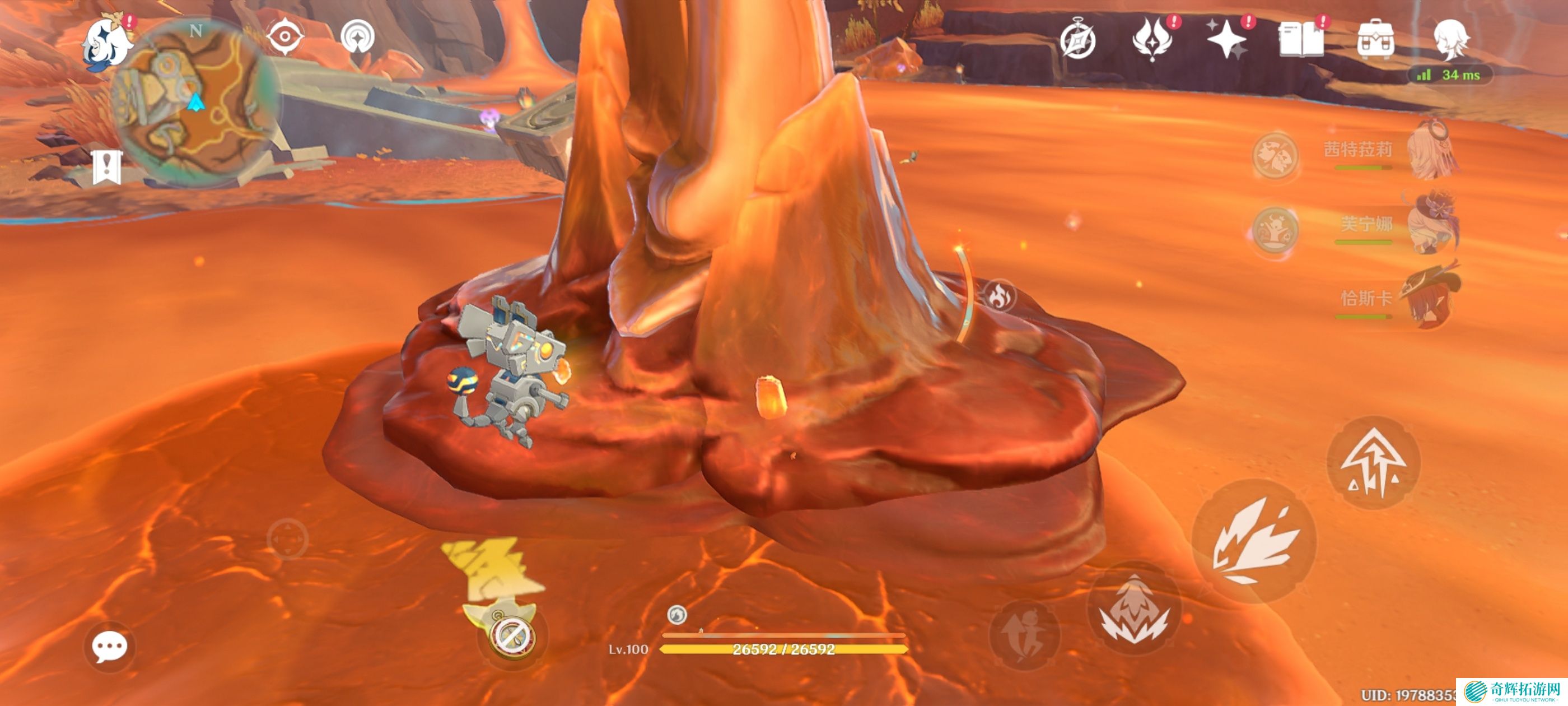 附身嵴锋龙前往岩浆上方,获得火神瞳*1