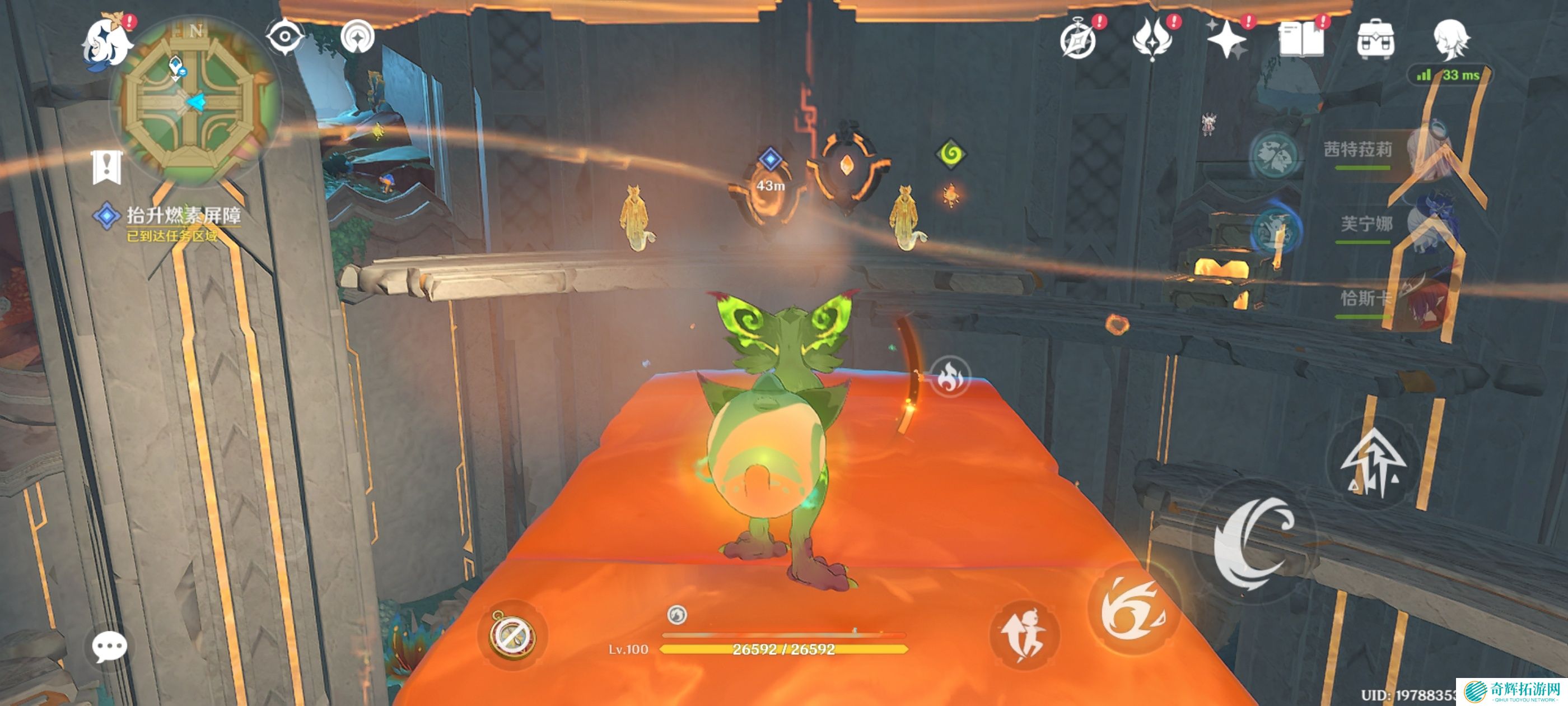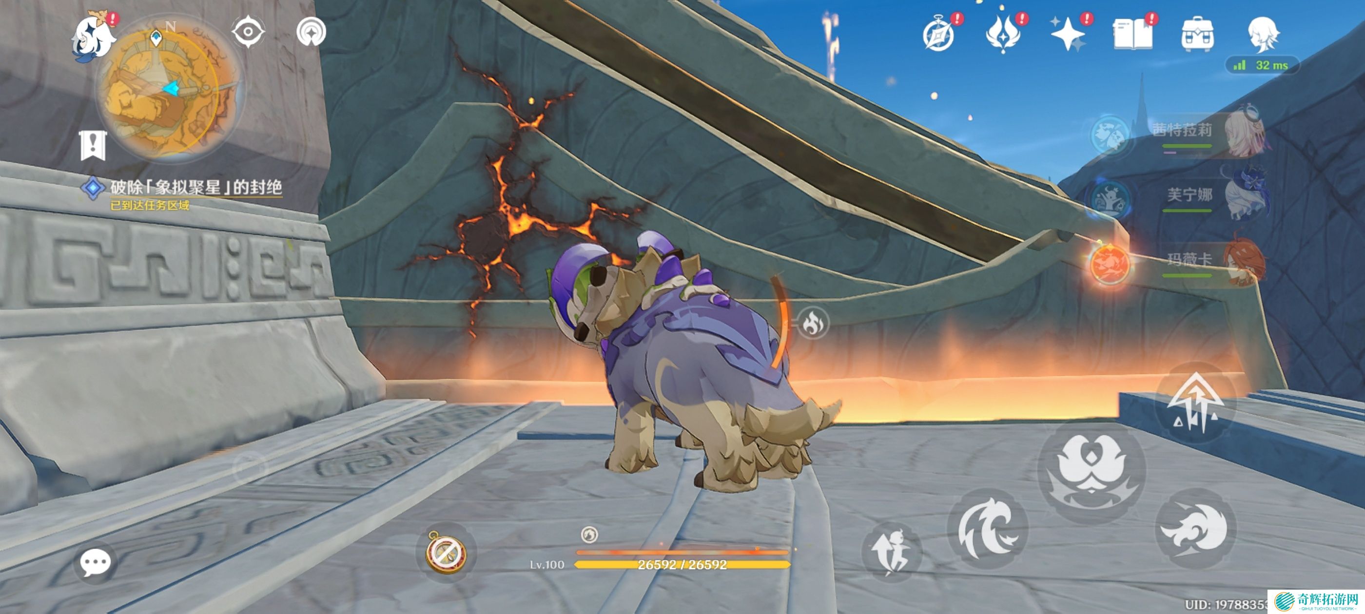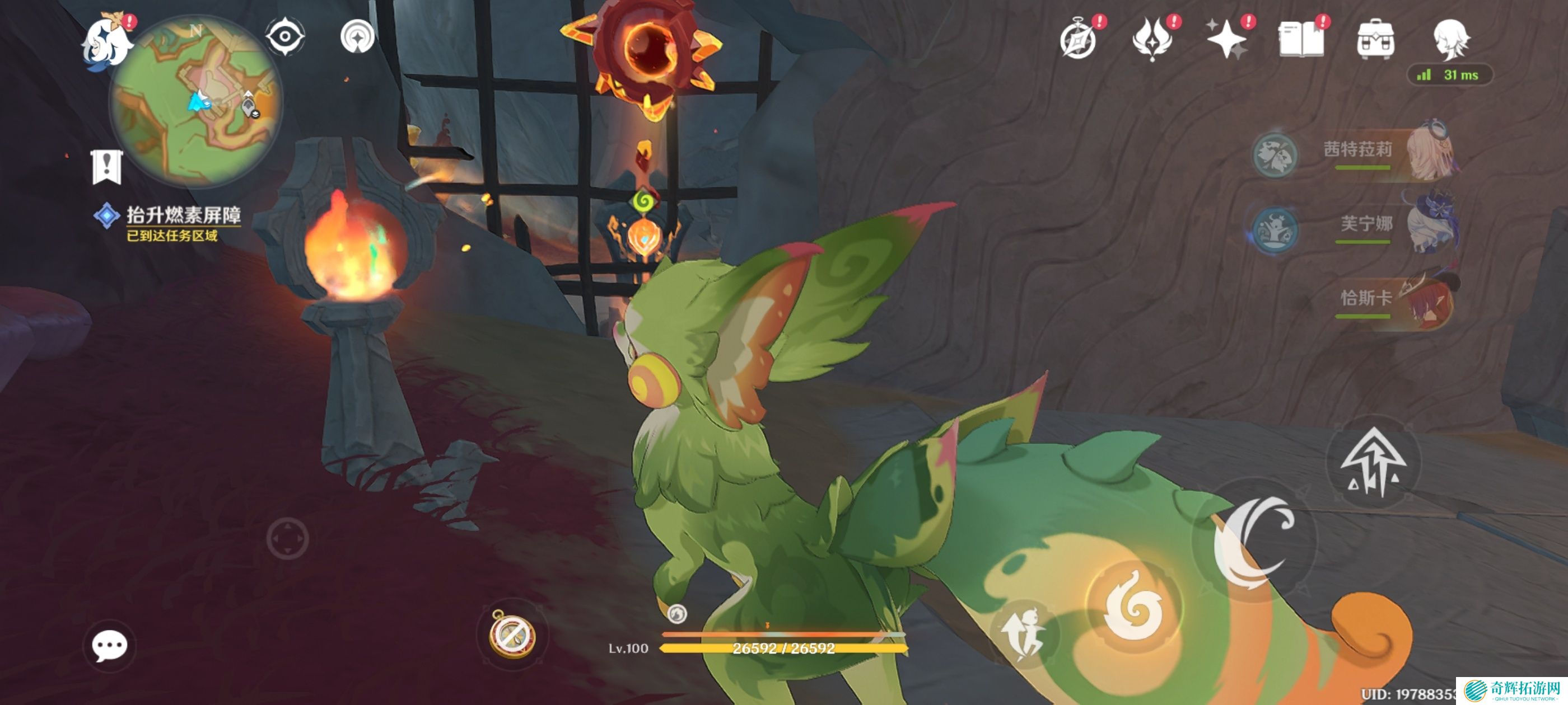 附身嵴锋龙前往岩浆上方,获得火神瞳*1
