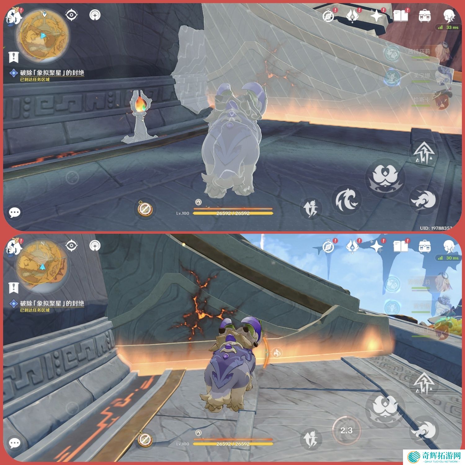清除路障消灭敌人阻碍,获得精致宝箱*1,回到右侧拾取固凝珠归位