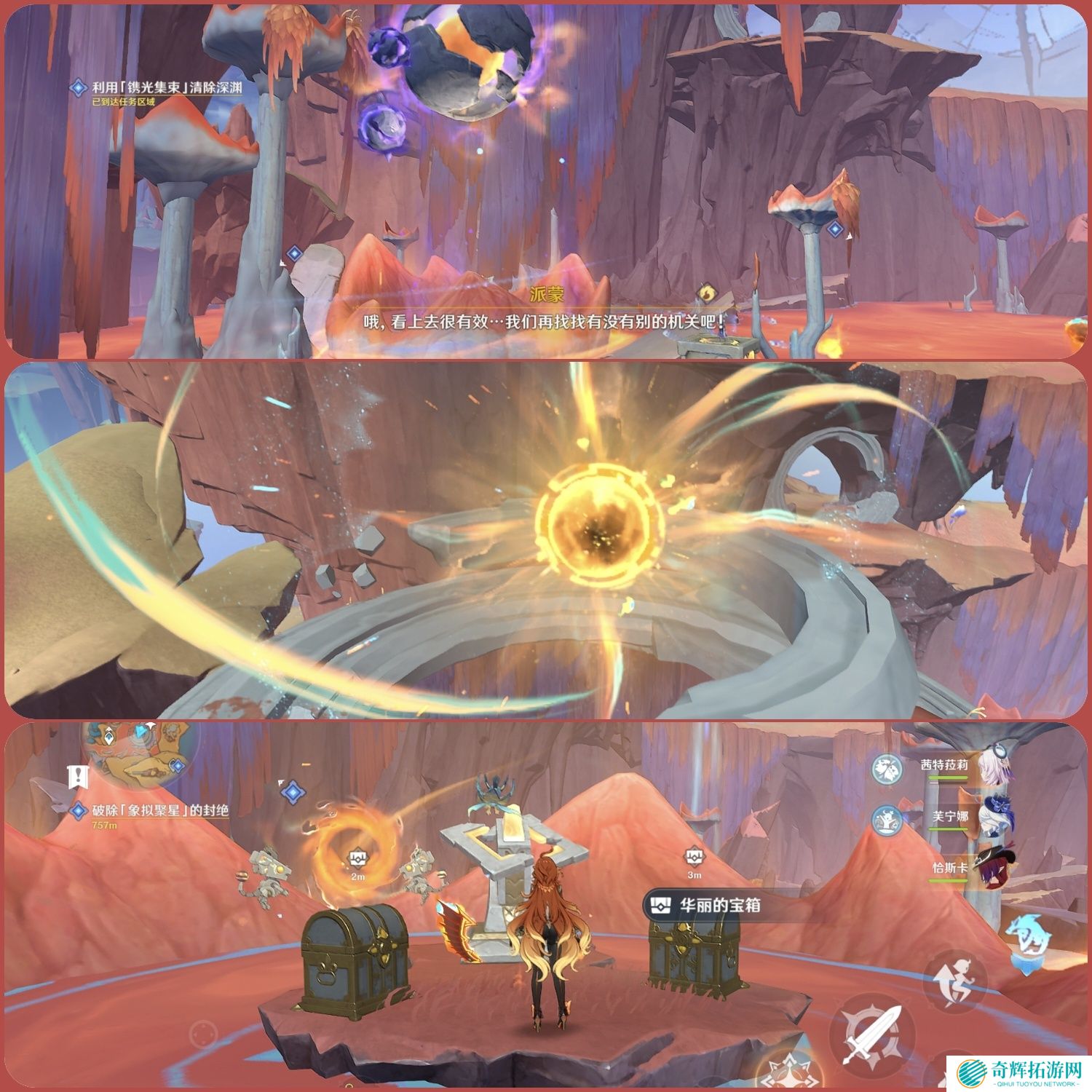 回到原处,启动机关清除深渊污秽,启动「象拟聚星」