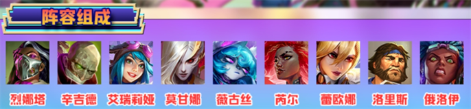 烈娜塔、辛吉德、艾瑞莉娅、莫甘娜、薇古丝、芮尔、蕾欧娜、洛里斯、俄洛伊组成