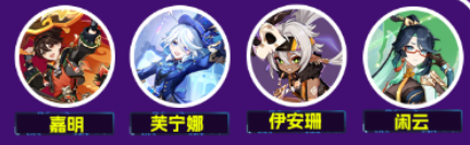 芙宁娜配合闲云和勇者套伊安珊能提供额增伤,嘉明吃到增益可以放心输出。