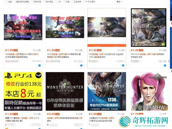 随着《怪物猎人:世界》的热销,淘宝上居然出现了一些代刷业务,网上也出现了一批“代刷灭尽龙80一盘”的趣图,小编本着刨根问底的态度去调查了一番。随意在淘宝上搜索了一下,还的确就有