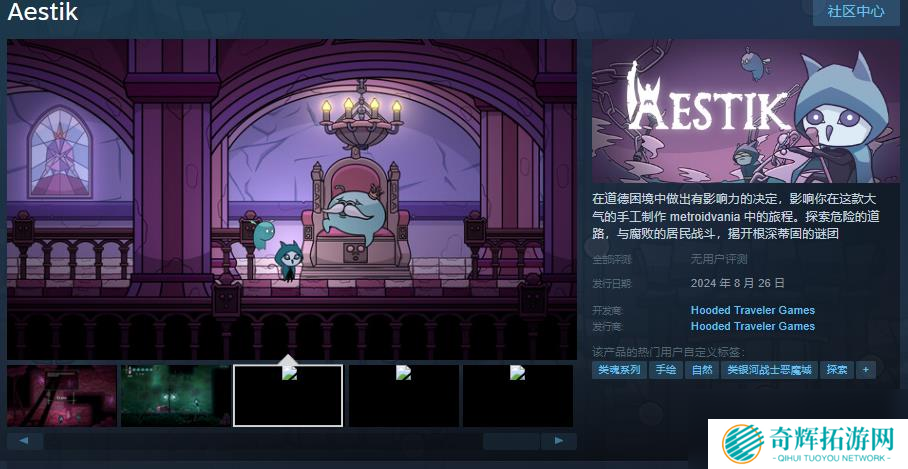 今日(7月27日),带有分支故事情节的手绘metroidvania游戏《Aestik》发售日公布,8月26日发售,感兴趣的玩家可以点击此处进入商店页面。 游戏介绍: 在道德困境中做出有影响力的