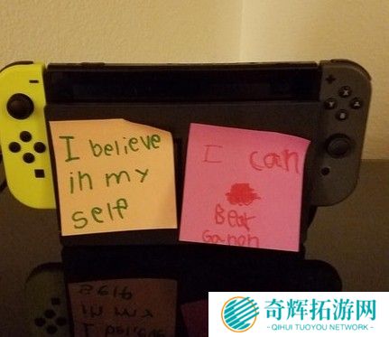 外网Reddit论坛中,网友发表帖子称他6岁的孩子在玩《塞尔达传说:荒野之息》中遇到了困难,无法击败最终boss Ganon。但小朋友并不气馁,在自己的游戏机上贴了小纸条来激励自己,告诉自己&ldqu