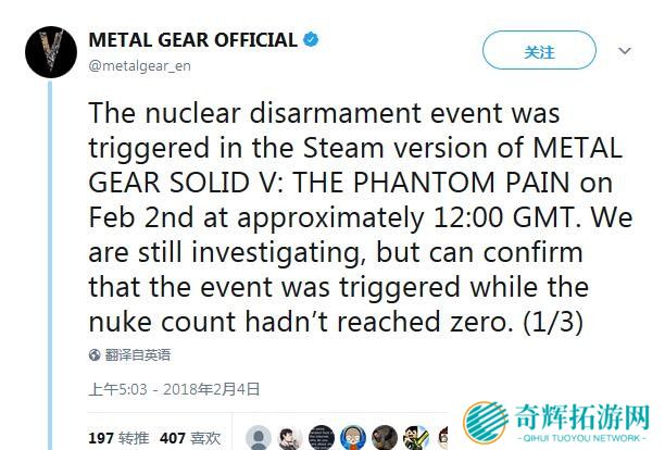 早先有人在 Youtube 上放出了《潜龙谍影5:幻痛》的“无核”隐藏结局,似乎在 PC 和 Xbox One 平台中,该作所有的玩家都已经放弃核武器,不过实事并非如此。收到反
