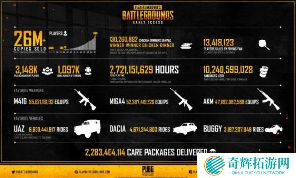 绝地求生可以说是目前最火的端游游戏之一了,因为绝地求生的火爆,很多游戏也在内容上增加了跳伞吃鸡模式,可想而知吃鸡的魅力有多大。近日,PUBG公司官方公布了一些有趣的数据,下面我们可以来看看这些数据了解