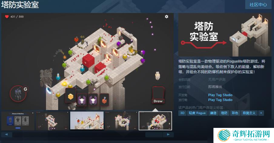 今日(7月27日),Roguelite塔防游戏《塔防实验室》Steam页面上线,游戏支持简繁体中文,感兴趣的玩家可以点击此处进入商店页面。 游戏介绍: 塔防实验室是一款物理驱动的Rog