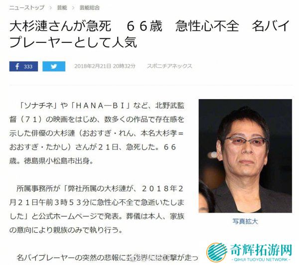 据日媒爆料,曾出演《最终幻想14:光之父亲》中父亲角色的大杉涟先生因突发心力衰竭而去世,享年66岁。《最终幻想14:光之父亲》是2017年MBS、TBS电视台制作播出的家庭喜剧,由山本清史、野口照夫执