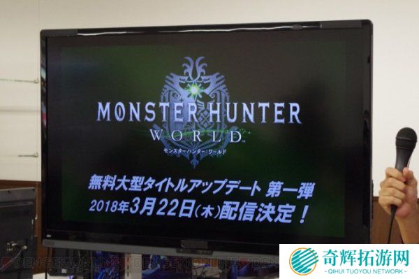 《怪物猎人世界》在3月14日于日本总部举办了媒体大会,并公布了将在3月22日的大型更新的相关细节。在本次更新中,将正式加入新怪物恐暴龙。在本次媒体大会公布的细节中确定本次大型更新将在3月22日推送,在