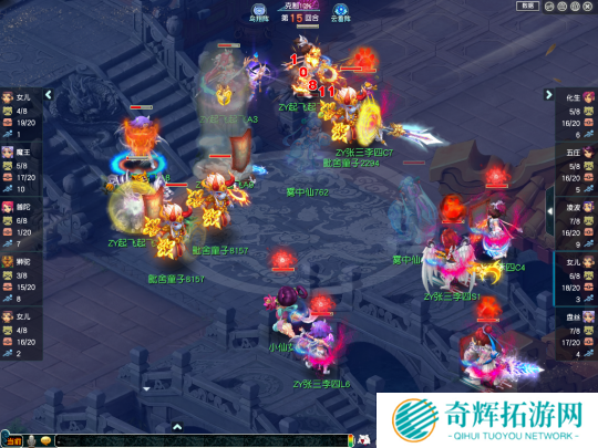 比赛第15回合,【张三李四】凌波城再度出手,一波打出10811点伤害带走【起飞起飞】女儿村,打断对手控制节奏。