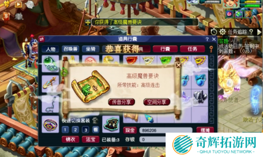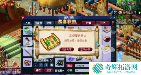 因为实在要领取太多兽决,冷酷就不一一截图了,但可以为各位总结一下,64强奖励分别领取了高级必杀、2本高级驱鬼、高级夜战、高级神佑、高级法术波动、高级招架、高级反击等兽诀,粗略估计总价值为1.4亿MHB。