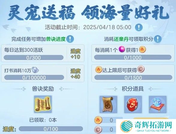 活跃打书福利:活动期间完成日常活跃、使用魔兽要诀均可累积进度,每累积一定进度可兑换随机高级魔兽要诀