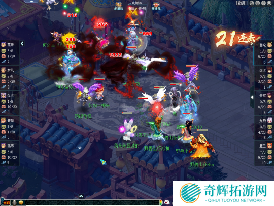 比赛第45回合,野兽出征的九黎城化身战神,一波打出21连击值,给神都偏爱造成了极大的血线压力。这波击杀之后,神都偏爱直接陷入无限拉人、无限到底的情况。