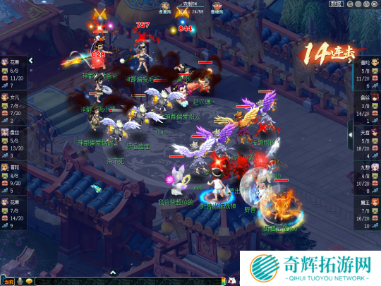 比赛前期,双方都以加状态和清宠为主,由于神都偏爱的女儿村低估了野兽出征盘丝硬件,导致其未能拿到全场一速,被野兽出征盘丝、天宫双封控的很惨。不过,就单点输出方面,野兽出征的九黎城面对起双旗的花果山时压力较大,被其压的非常难受。