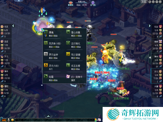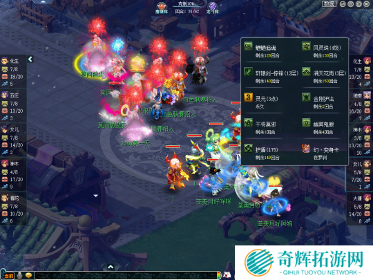 不过,由于双方硬件实力差距叫大,莫问前尘即便拥有阵法大克和节奏优势也很难清场荃美月好,反被其利用谛听清掉了不少召唤兽。比赛第31回合,荃美月好大唐官府已经叠出三层满天,极大的增加了点杀成功率。