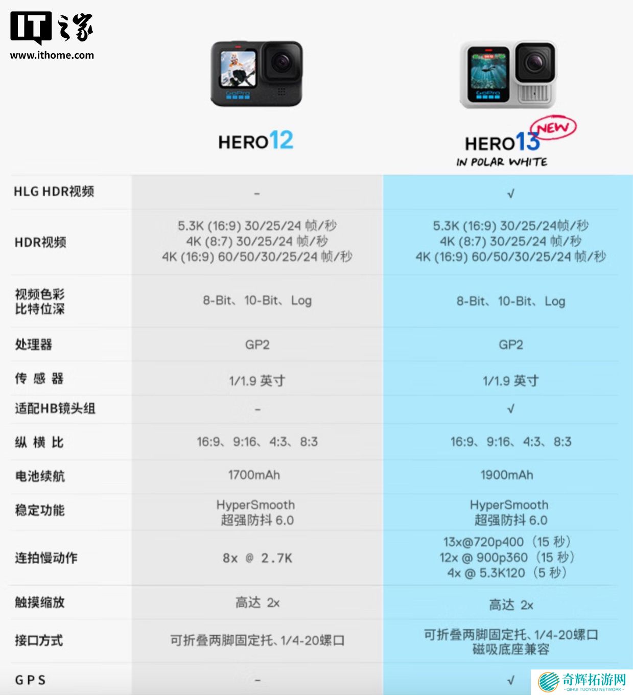 本站附该相机对比 Hero 12 对比参数如下,目前,该相机在京东售价 2998 元,国补 15% 到手价 2548.3 元起: