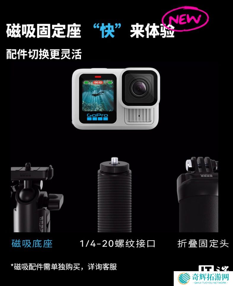 根据 GoPro 官方所述,该“极域白”配色运动相机“数量有限,但乐趣无边”,可搭配 HB 系列磁吸镜头 / 滤镜使用,在装上 HB 系列镜头 / 滤镜后相机可自动检测,自动优化相差 / 畸变等。